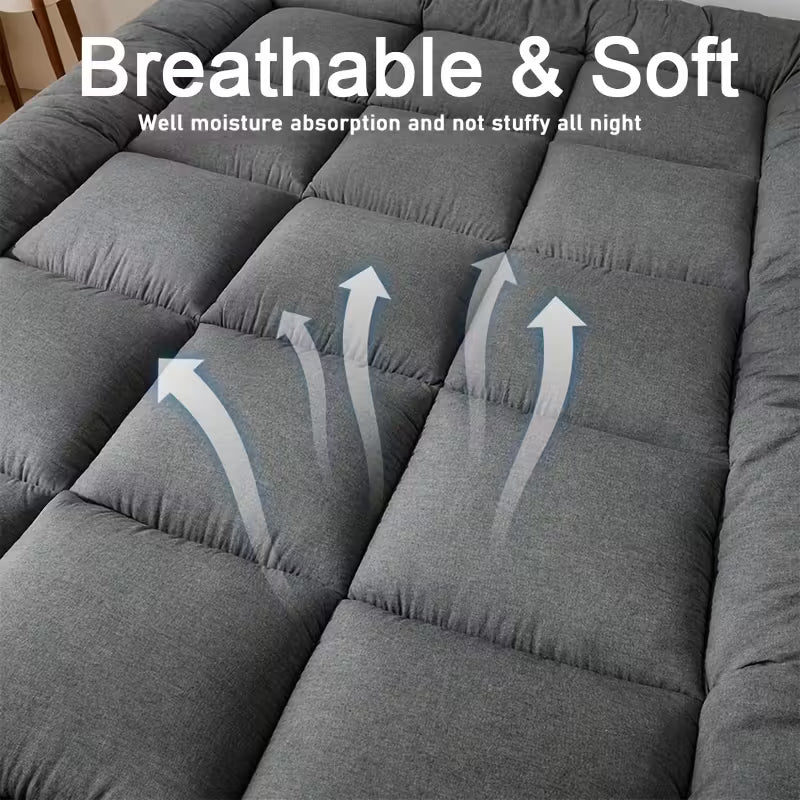 Full Size, Thick Plush Quilted Design with Gray Piping, Breathable Polyester Fabric, Foldable for Camping, Dorms, and Guest Rooms
